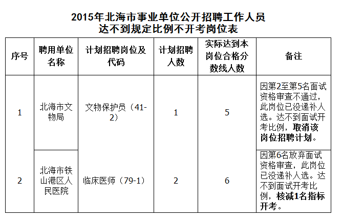 原標題:2015年北海市事業(yè)單位公開招聘工作人員面試資格審查不通過取消和核減聘用指標公告