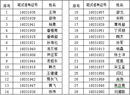 參加面試考生名單: