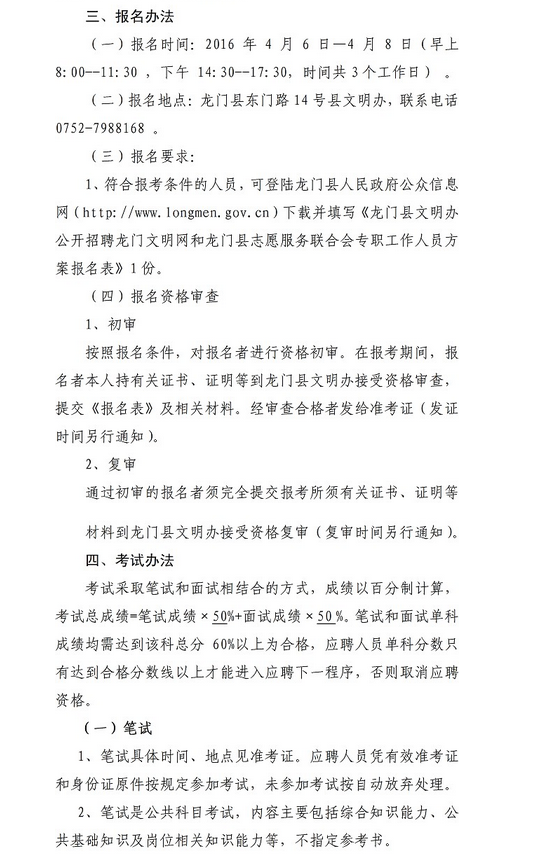 2016廣東龍門縣文明辦招聘政府購買服務人員4人公告