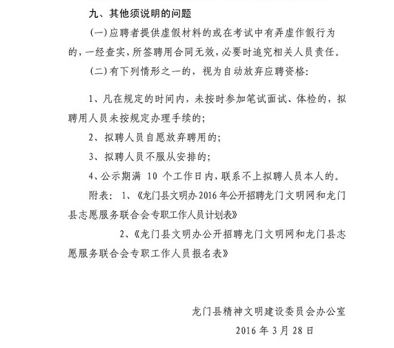 2016廣東龍門縣文明辦招聘政府購買服務人員4人公告