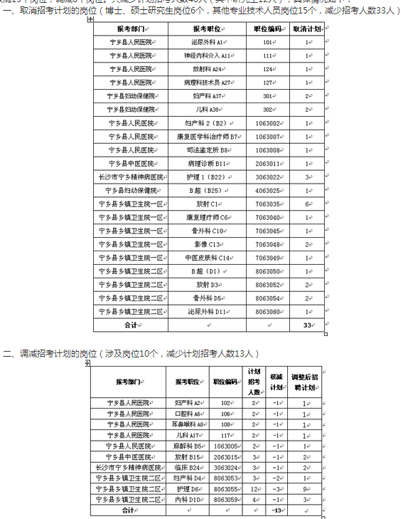 2016湖南寧鄉(xiāng)縣衛(wèi)計系統(tǒng)招聘計劃調(diào)減及有關(guān)事項通知