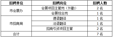 根據(jù)工作需要,武漢市商務(wù)局下設(shè)部門市會(huì)展辦與市招商局面向社會(huì)公開招聘7名工作人員。招考流程為:報(bào)名-資格初審-筆試-面試-體檢政審-入職。具體事宜公告如下: