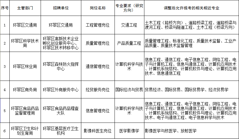 為方便考生報(bào)考,根據(jù)招聘單位對(duì)崗位的專業(yè)要求,按照相關(guān)相近的原則,對(duì)2016年環(huán)翠區(qū)屬事業(yè)單位部分崗位允許報(bào)考的專業(yè)在報(bào)名期間隨時(shí)進(jìn)行增補(bǔ),請(qǐng)考生及時(shí)關(guān)注。