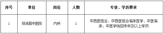 鑒于縣中醫(yī)院中醫(yī)臨床專業(yè)報考人數(shù)不足的實際情況,經(jīng)綏濱縣事業(yè)單位招聘工作領(lǐng)導(dǎo)小組2016年4月12日會議研究決定,擴大縣中醫(yī)院此崗位報考專業(yè),公告如下: