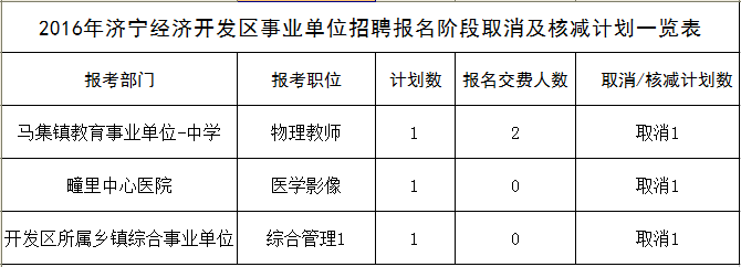 2016山東濟(jì)寧經(jīng)濟(jì)開(kāi)發(fā)區(qū)事業(yè)單位招聘報(bào)名階段取消及核減計(jì)劃