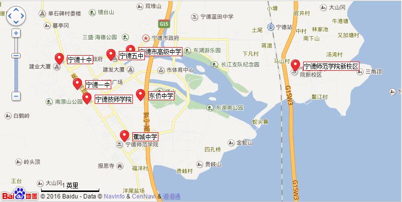 福建省2016年公務員錄用考試筆試于4月23日(星期六)舉行,我市共設置寧德一中、寧德五中、寧德十中、寧德市高級中學、蕉城中學、東僑中學、寧德師范學院新校區(qū)、寧德技師學院等8個考場,具體地圖如下,請各考生通過百度地圖等工具事先確認好自己的考場位置。