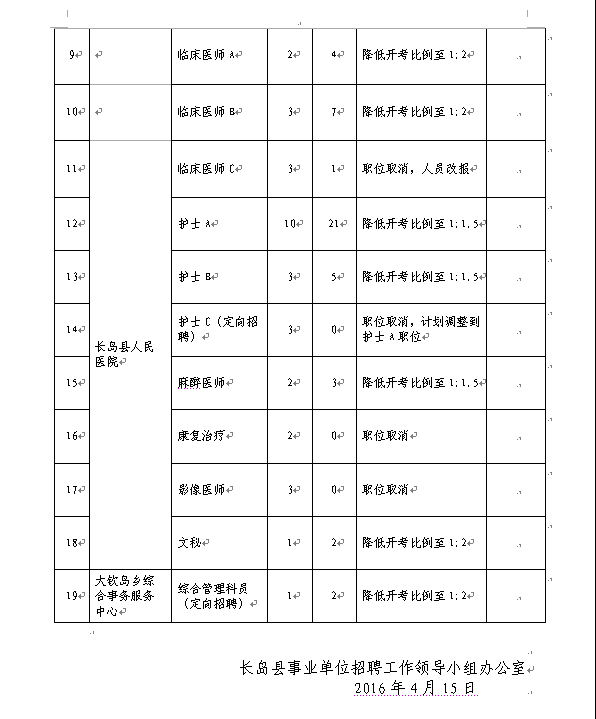 2016山東長島縣事業(yè)單位招聘職位計(jì)劃取消調(diào)整公告