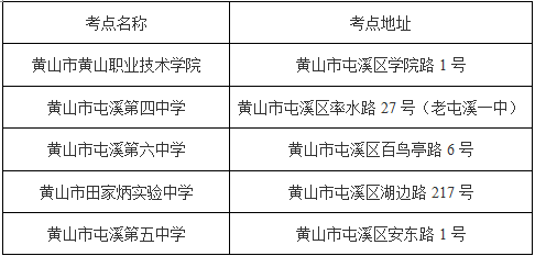 2016安徽黃山市公務員考試各考點地址公布