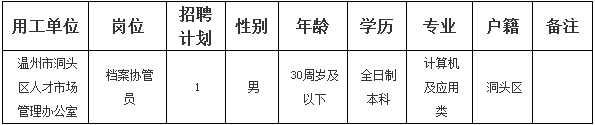 因工作需要,溫州市洞頭人才發(fā)展有限公司決定面向社會(huì)公開(kāi)招聘1名派遣員工,現(xiàn)將有關(guān)事宜公告如下: