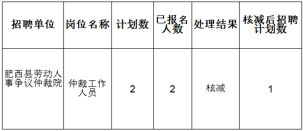 2016安徽肥西縣勞動(dòng)人事爭(zhēng)議仲裁院選調(diào)崗位核減情況公告