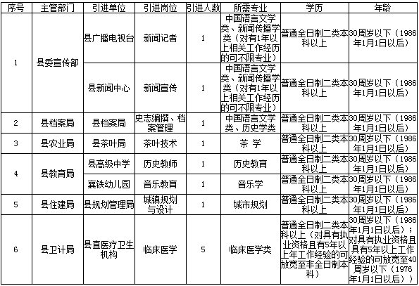 為大力實(shí)施人才興縣戰(zhàn)略,根據(jù)《縣委辦公室 縣政府辦公室關(guān)于印發(fā)急需緊缺人才引進(jìn)管理暫行辦法(五辦文〔2015〕25號(hào))》文件精神,經(jīng)縣委縣政府同意,現(xiàn)面向社會(huì)公開引進(jìn)12名急需緊缺人才?,F(xiàn)將有關(guān)事項(xiàng)公告如下: