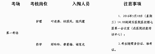 閩東醫(yī)院2016年上半年公開招聘工作人員專業(yè)技能考核為第一組0032護(hù)理,第二組0033藥學(xué),第一組、第二組均在第一考場(chǎng)。專業(yè)技能考核為專業(yè)技能操作1題,相關(guān)專業(yè)知識(shí)測(cè)試2題。