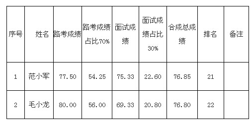 根據(jù)峽江縣機關事務管理局公務用車服務中心招聘合同制司勤人員工作方案有關要求,現(xiàn)因兩位考生政審不合格,不予錄用,出現(xiàn)的空缺崗位,按合成成績從高到低依次予以遞補,遞補人員名單公告如下: