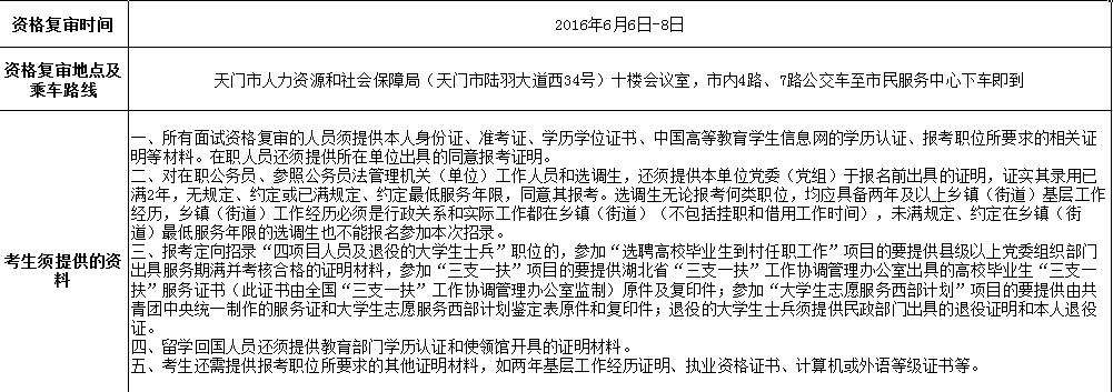 2016湖北天門市公務(wù)員考試錄用資格復(fù)審公告