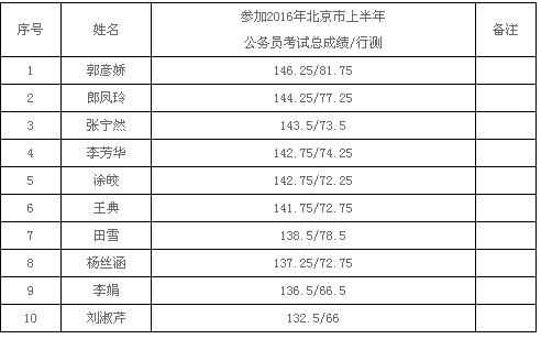 根據(jù)《北京市事業(yè)單位公開(kāi)招聘工作人員實(shí)施辦法》(京人社專技發(fā)?2010?102號(hào))的有關(guān)規(guī)定,按照《北京市部分事業(yè)單位定向公開(kāi)招聘2016年合同期滿大學(xué)生村官工作公告》的具體要求,依據(jù)2016年北京市上半年公務(wù)員考試成績(jī)由高到低排序和1:5的面試比例,現(xiàn)將進(jìn)入北京市環(huán)境保護(hù)監(jiān)測(cè)中心定向公開(kāi)招聘北京市2016年合同期滿大學(xué)生村官面試人選公告如下: