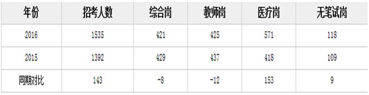 從歷年招聘人數(shù)可以發(fā)現(xiàn),吉林市事業(yè)單位考試招聘人數(shù)呈遞增趨勢??忌辛烁嗟膷徫豢梢赃x擇,同時本次考試中醫(yī)療崗仍以571人的招聘人數(shù)位居招聘榜首,綜合崗和教師崗招考人數(shù)略微下降。符合條件的廣大考生可以抓住本次機(jī)會。歷年招聘情況入下表: