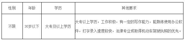招聘法制輔助人員1人,負(fù)責(zé)我局法制檔案管理、執(zhí)法數(shù)據(jù)報(bào)送、聽證記錄工作,協(xié)助辦理行政復(fù)議、訴訟等工作。