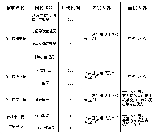 筆試采取閉卷考試方式,按照規(guī)定的開考比例進(jìn)行(見下表)。主要測試公共基礎(chǔ)知識及報(bào)考崗位專業(yè)知識??荚嚥恢付ㄝo導(dǎo)用書,采用百分制計(jì)分。筆試具體時(shí)間、地點(diǎn)及相關(guān)要求以筆試準(zhǔn)考證為準(zhǔn)。