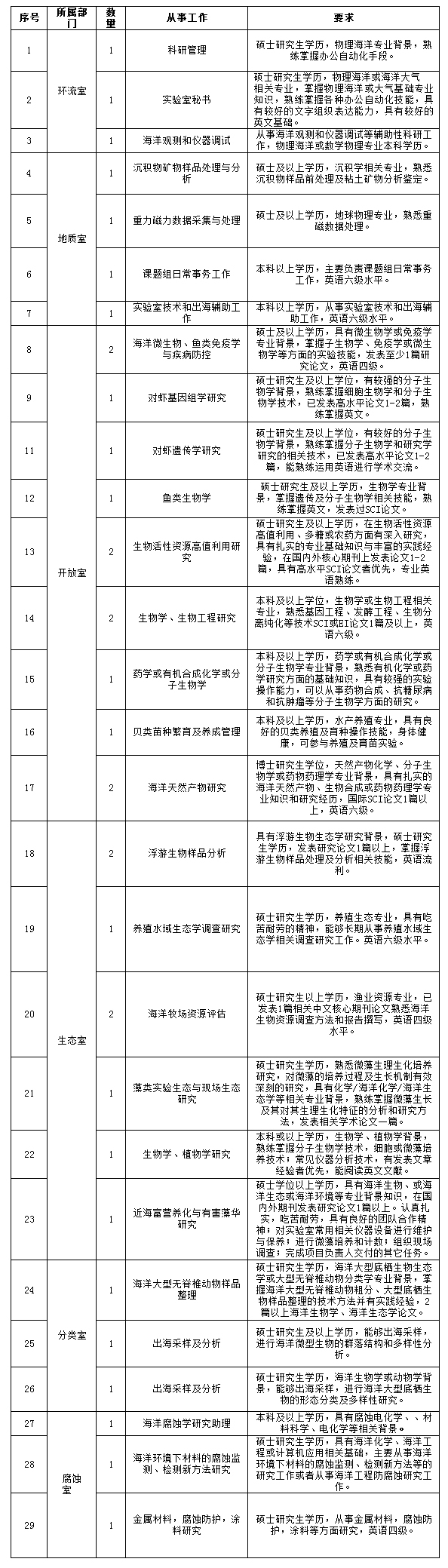 根據(jù)工作需要,2016年中科院海洋所擬面向應屆畢業(yè)研究生招聘研究助理35名?,F(xiàn)將具體崗位設置與工作任務和報名的有關事宜通知如下: