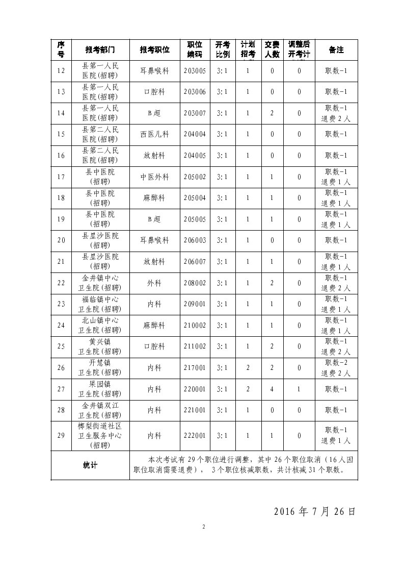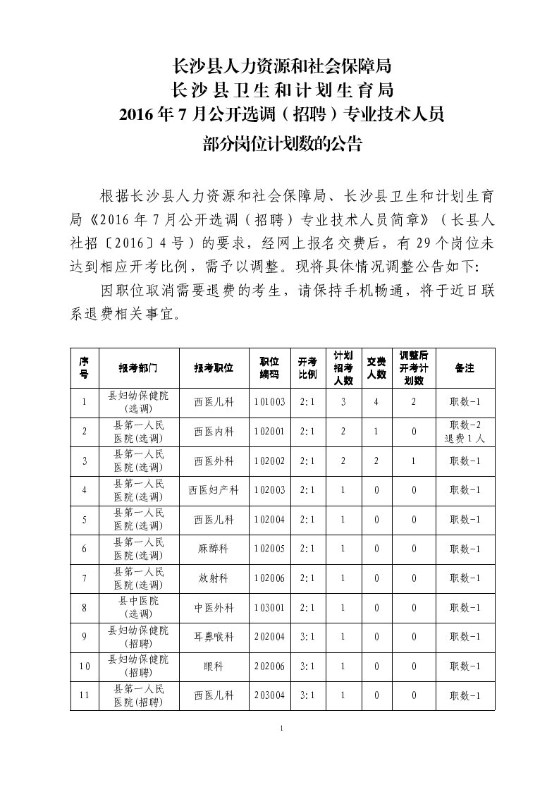 原標題:長沙縣人力資源和社會局長沙縣衛(wèi)生和計劃生育局2016年7月公開選調(招聘)專業(yè)技術人員調整部分崗位計劃數的公告