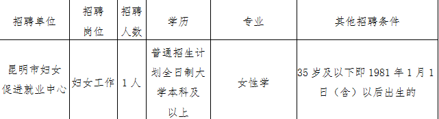 2016云南昆明市婦女促進(jìn)就業(yè)中心招聘公告【招1人】