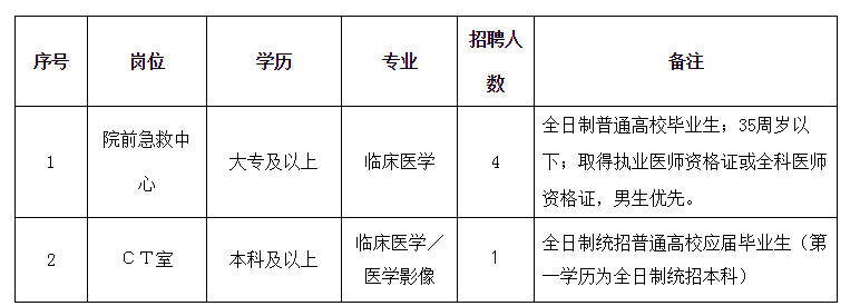 根據(jù)我院工作發(fā)展需要,我院CT室及120急救中心擬招聘工作人員5名,具體事項如下: