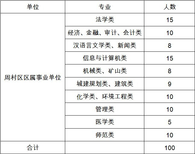 為加快實施人才強區(qū)戰(zhàn)略,進一步完善我區(qū)事業(yè)單位專業(yè)技術人員、管理人員隊伍結構,干部隊伍素質。經周村區(qū)委、區(qū)政府研究決定,面向全國招聘100名緊缺人才到周村工作。現將有關事項公告如下: