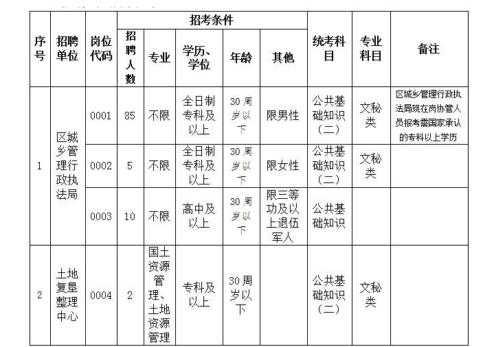 經(jīng)區(qū)政府批準(zhǔn),2016年度潁泉區(qū)城鄉(xiāng)管理行政執(zhí)法局面向社會(huì)公開(kāi)招聘編外工作人員100名;潁泉區(qū)土地復(fù)墾整理中心面向社會(huì)公開(kāi)招聘編外工作人員2名。