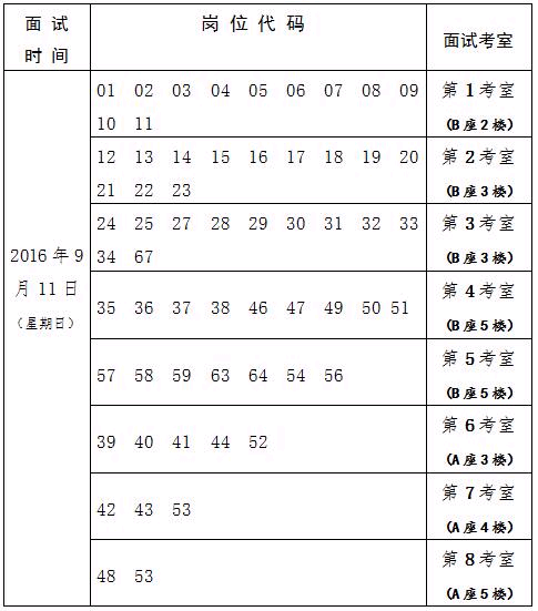 2、時(shí)間:2016年9月11日??忌衔?:00報(bào)到,7:30未報(bào)到視為棄權(quán)。上午8:00開始面試。