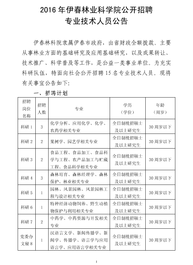 2016黑龍江伊春林業(yè)科學(xué)院招聘15名專業(yè)技術(shù)人員公告