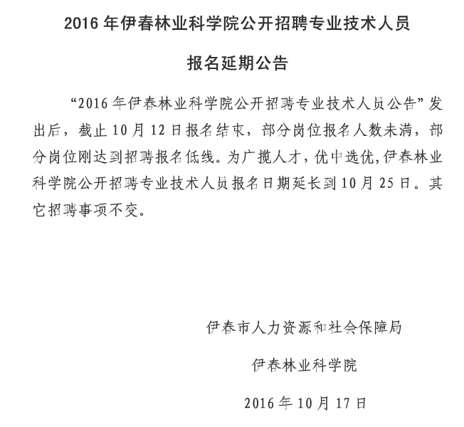 2016伊春林業(yè)科學院招聘專業(yè)技術人員報名延期公告