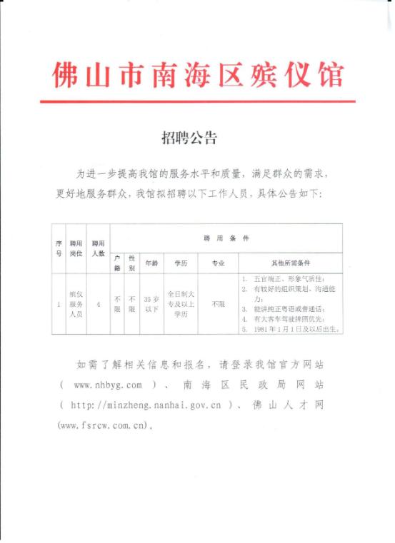 2016廣東佛山市南海區(qū)殯儀館招聘公告【招4人】