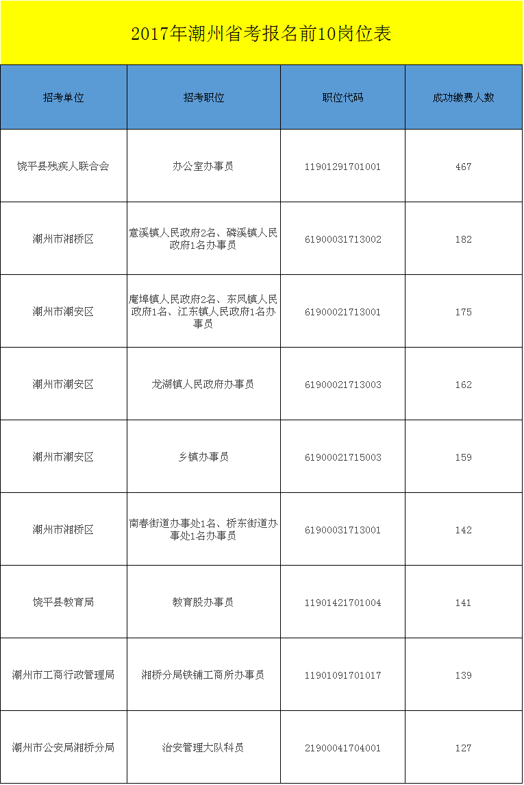 【潮州考區(qū)】2017廣東省考最終招考人數(shù)(共11217人報(bào)名)