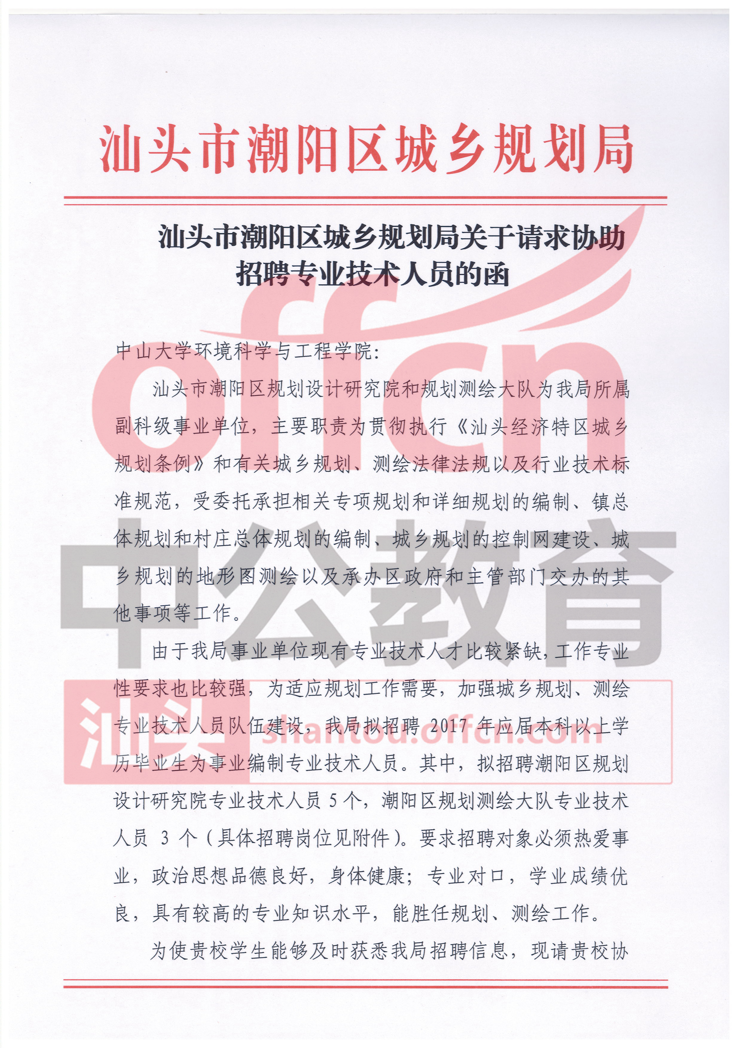 2017汕頭市潮陽區(qū)城鄉(xiāng)規(guī)劃局招聘專業(yè)技術(shù)人員公告【招8人】