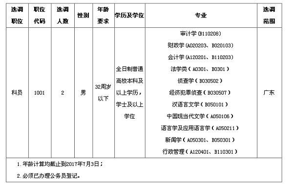備注:正在試用期的,接受處間或接受審計(jì)、紀(jì)律審查、司法偵察的,違反計(jì)劃生育和有關(guān)規(guī)定的,以及具有其他不宜參加公開(kāi)選調(diào)情形的均不列入公開(kāi)選調(diào)對(duì)象。