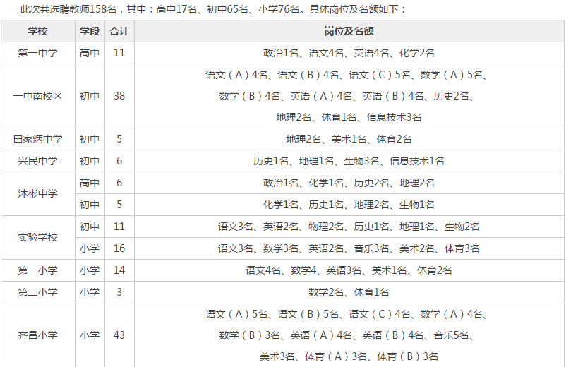 教師考試網(wǎng)校備考群:457858428為城區(qū)教育教學(xué)工作的正常開展,按照《興寧市城區(qū)部分中小選聘教師的有關(guān)規(guī)定》(興教[2014]49號),現(xiàn)將2017年暑期城區(qū)10所中小選聘教師相關(guān)事項(xiàng)公告如下: