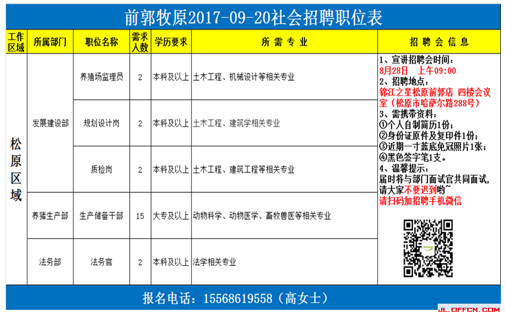 2017吉林省松原市前郭縣牧原招聘公告【招23人】