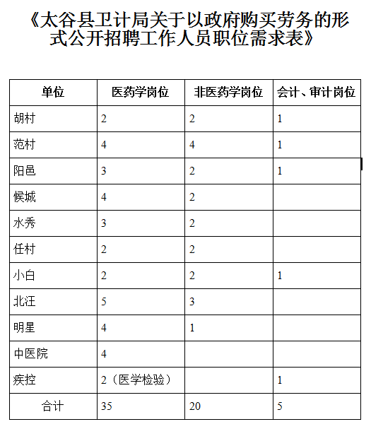原標(biāo)題:晉中太谷縣衛(wèi)計(jì)局公開(kāi)招聘60名人員方案