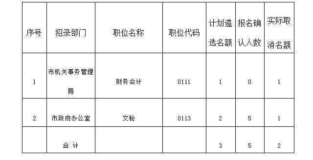 二、取消、減少2個(gè)達(dá)不到筆試開考比例職位