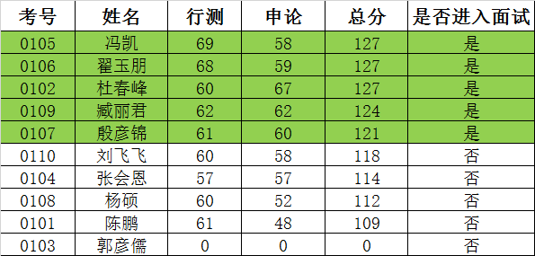 面試采用結(jié)構(gòu)化面試方式進行。面試主要測評考生的言語表達能力、綜合分析能力、專業(yè)素養(yǎng)、個人儀表等。評委打分成績保留到小數(shù)點后二位小有數(shù)字,且不能為0。面試成績?yōu)?位評委分數(shù)的平均分,面試滿分為100分。