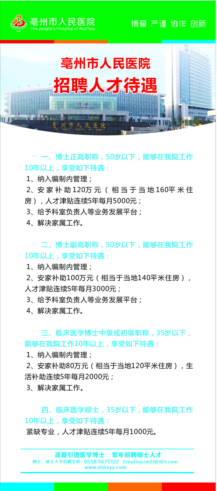 2018安徽亳州市人民醫(yī)院博士碩士招聘公告【招98人】