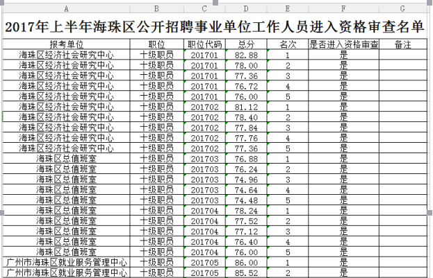 根據(jù)2017年上半年海珠事業(yè)單位面試名單來看。部分崗位筆試成績達到80分左右就可以進入面試。