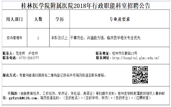 2018廣西桂林醫(yī)學(xué)院附屬醫(yī)院行政職能科室招聘公告