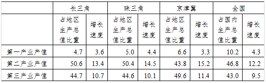 表 2010年三大經(jīng)濟圈產(chǎn)業(yè)結(jié)構(gòu)及增長速度(%)