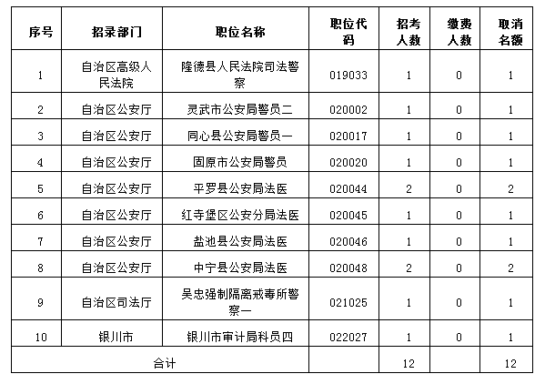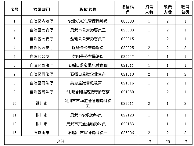2018寧夏公務(wù)員部分職位降低開考比例或取消部分招考名額公告