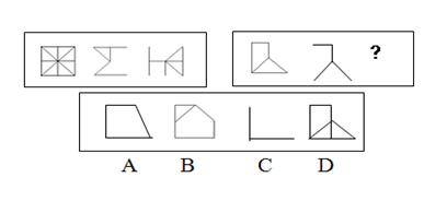 解答:正確答案為C。因?yàn)樵诘谝惶讏D形中的后兩個(gè)圖形疊加在一起正好合成第一個(gè)圖形;在第二套圖形中的問(wèn)號(hào)處如果為C項(xiàng)則與第一套圖形的規(guī)律一致。