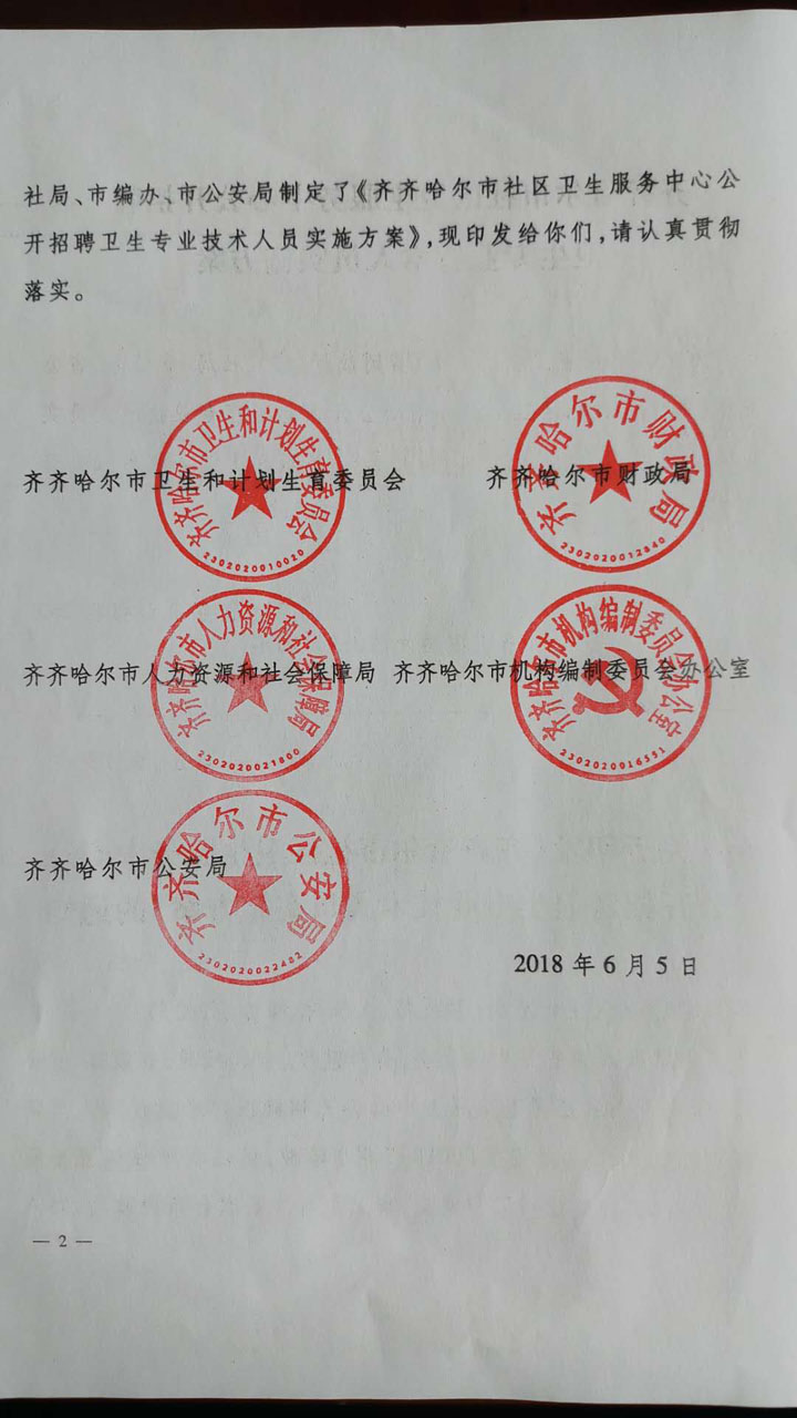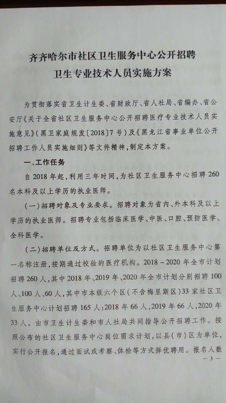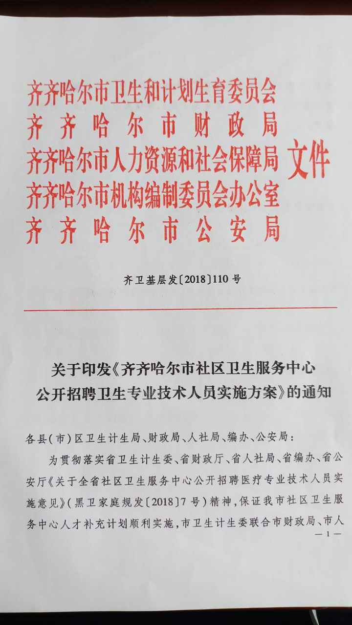 2018黑龍江齊齊哈爾社區(qū)衛(wèi)生服務(wù)中心招聘衛(wèi)生專業(yè)技術(shù)人員122人實(shí)施方案