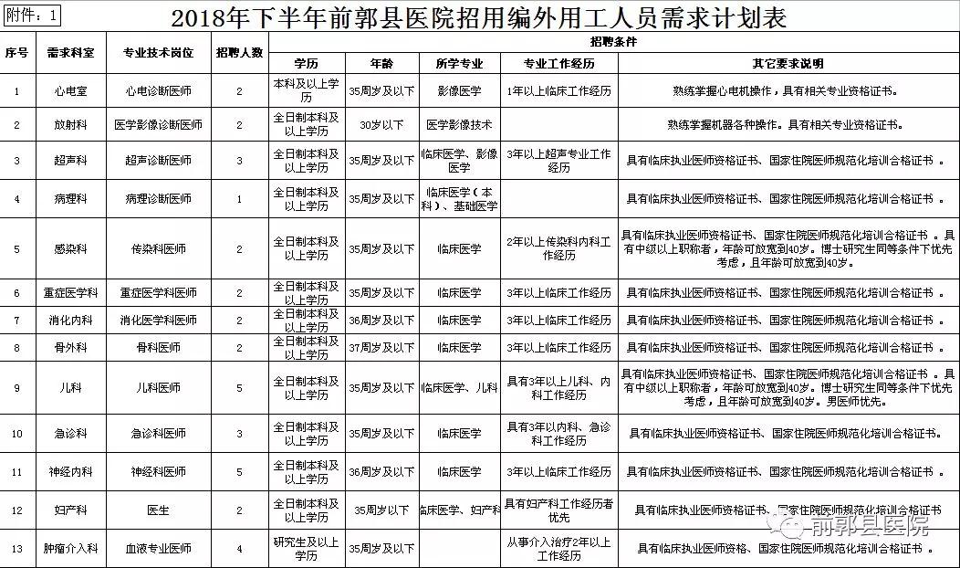 附件:1. 《2018年前郭縣醫(yī)院招用編外用工人員需求計劃表》