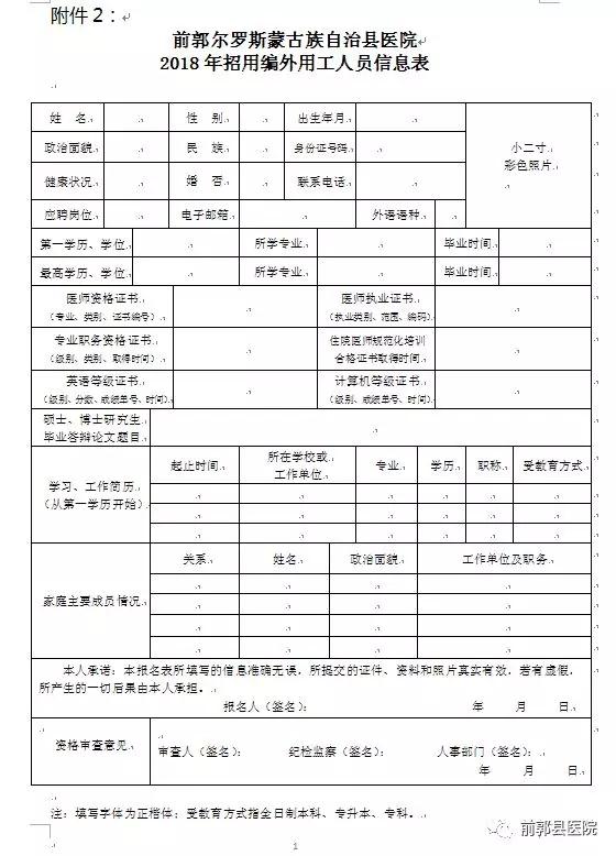 2. 《前郭縣醫(yī)院招用編外用工人員報名信息表》