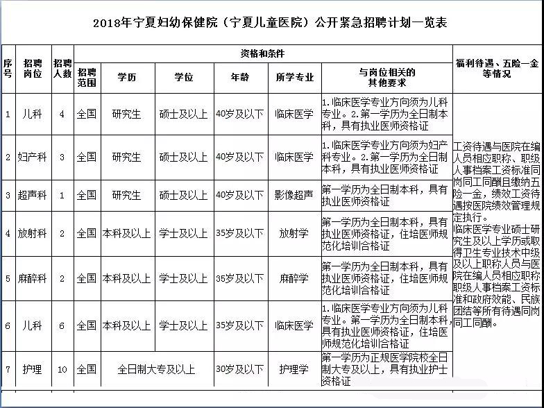 原標(biāo)題:寧夏婦幼保健院(寧夏兒童醫(yī)院)招聘公告